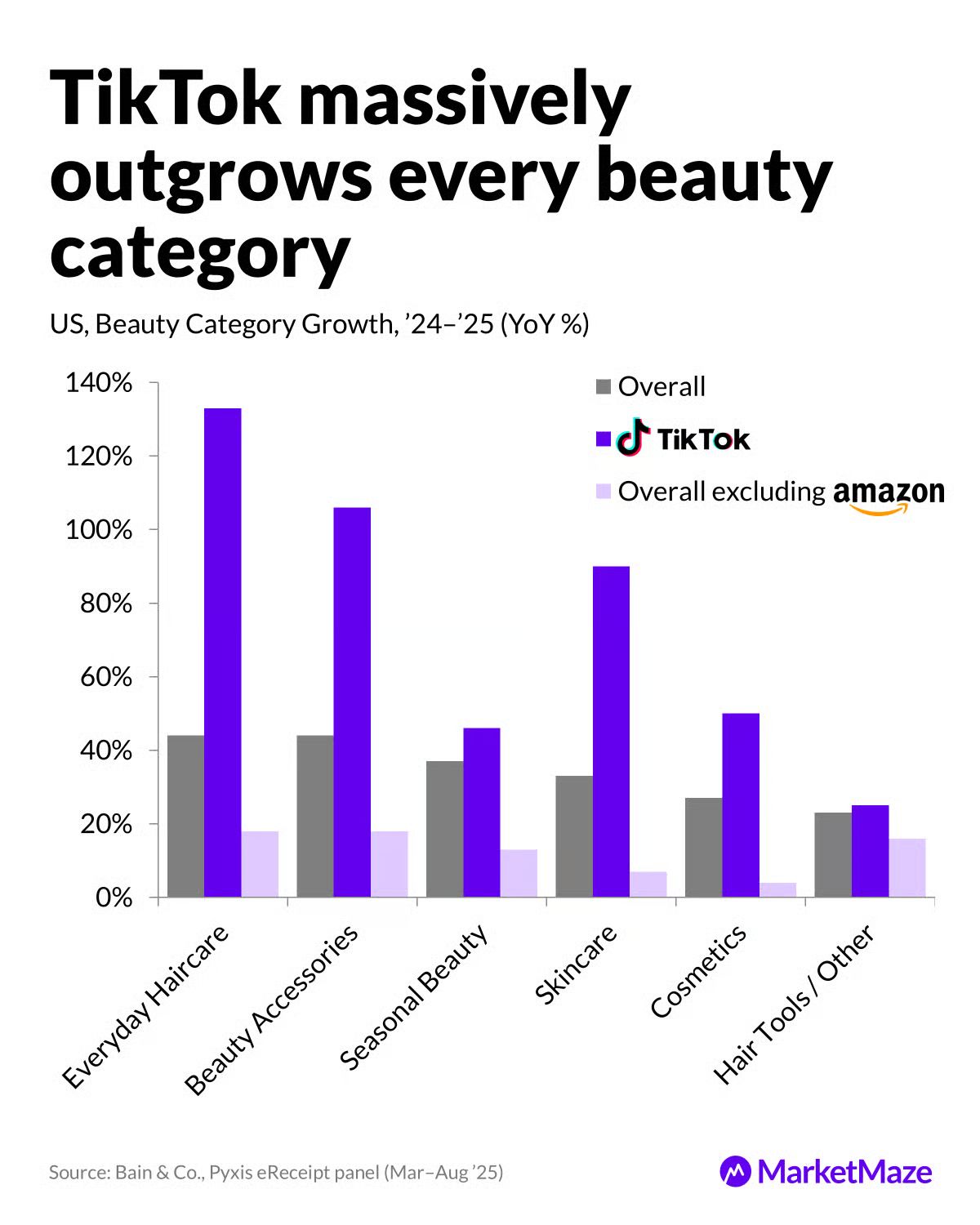 The Maze: Beauty is shifting from traditional retail to platforms built for speed, habit and cultural pull. The data shows category share concentrating with Ulta, TikTok and Target, while growth skews sharply toward algorithm-driven channels. The result is a market where discovery, purchase and repeat behavior merge into one loop.