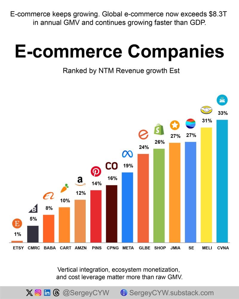 The Maze: The fastest growing ecommerce companies are not always the biggest ones. Growth increasingly comes from ecosystem players combining commerce, logistics, payments, and advertising. Infrastructure is becoming more valuable than pure retail.