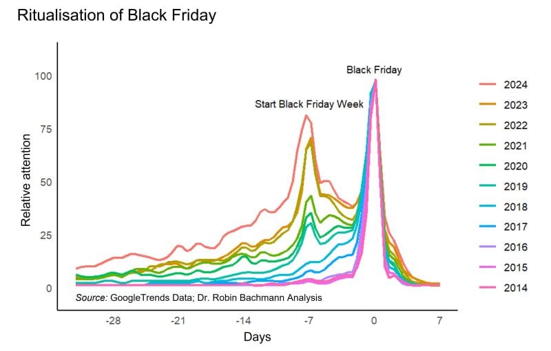 The Maze: Black Friday profits in Germany are slipping as an 11% oversupply collides with a discount culture that consumers treat as ritual, not rational choice. Shoppers participate because everyone else does, so deep cuts aren’t even required. Yet retailers slash prices anyway to clear the extra inventory flooding Europe after US tariff changes, pushing margins into a painful downturn.