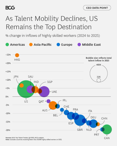 The Maze: Global talent is moving less, but moving with intent. The US remains the top destination, while the Middle East is rising fast for technical roles. Policy and opportunity now outweigh lifestyle.