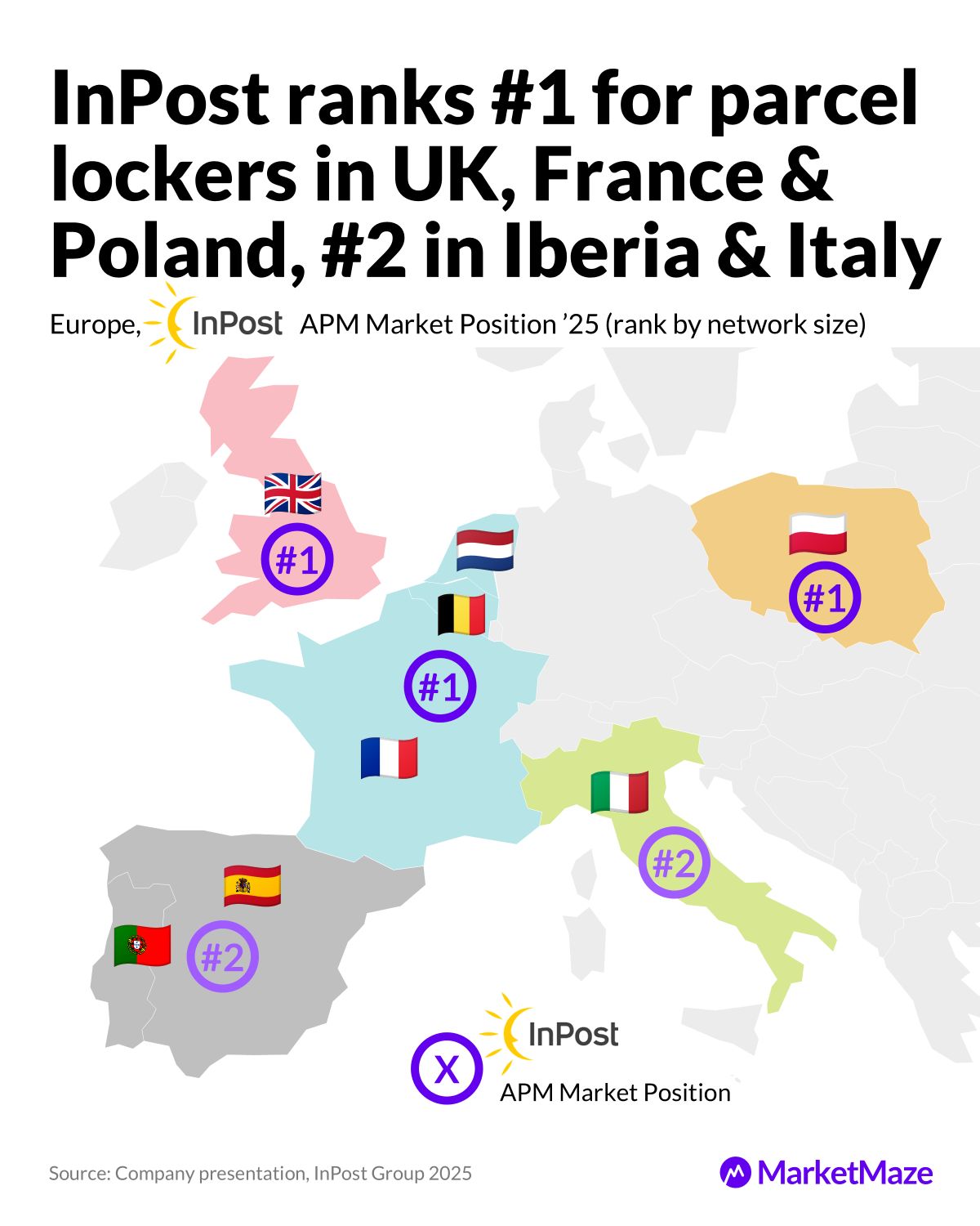 InPost now ranks #1 for parcel lockers in the UK, France, and Poland, and #2 in Italy and Iberia. Its locker footprint stretches from Manchester to Madrid, covering markets once dominated by incumbents like DPD and Mondial Relay. This network gives InPost unmatched access to over 500 million consumers across Europe. The shift signals that out-of-home delivery is no longer a niche—it is the backbone of modern e-commerce logistics.