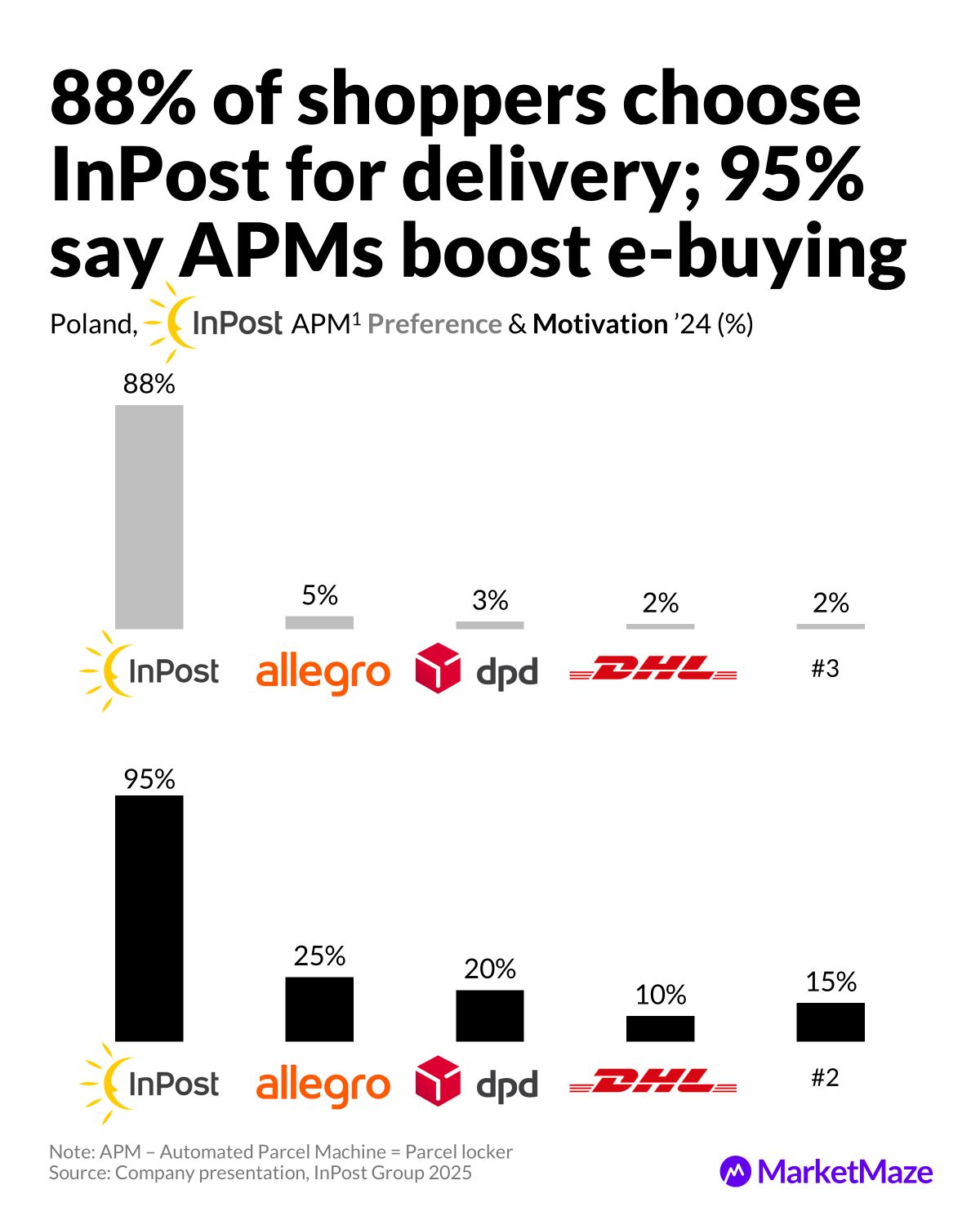 In Poland, 88% of shoppers choose InPost for delivery and 95% say lockers motivate them to buy. This isn’t about shipping—it’s about conversion. When consumers see an InPost option at checkout, they click buy. That’s not brand love. That’s habit reinforced by reliability, speed, and proximity. InPost turned parcel collection into retail’s most underrated growth lever.