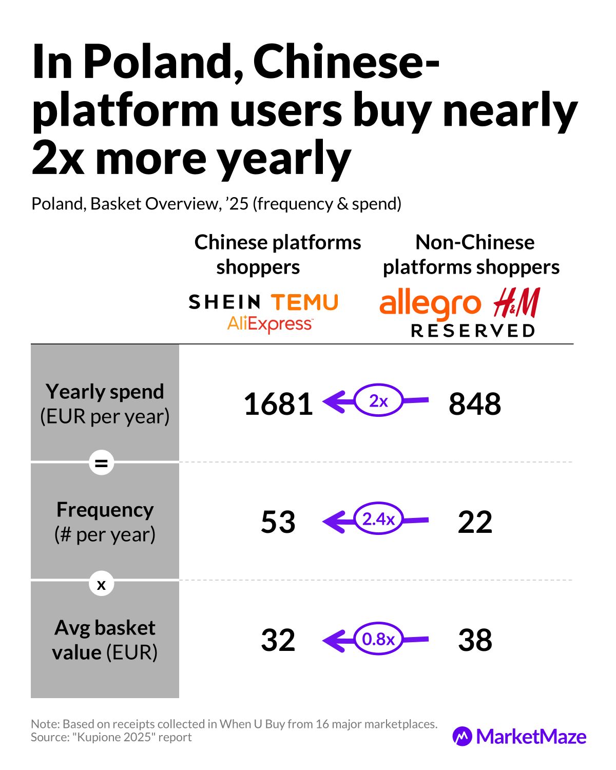 → Allegro reaches 65 yearly purchases among Chinese-platform users vs 39 for locals.