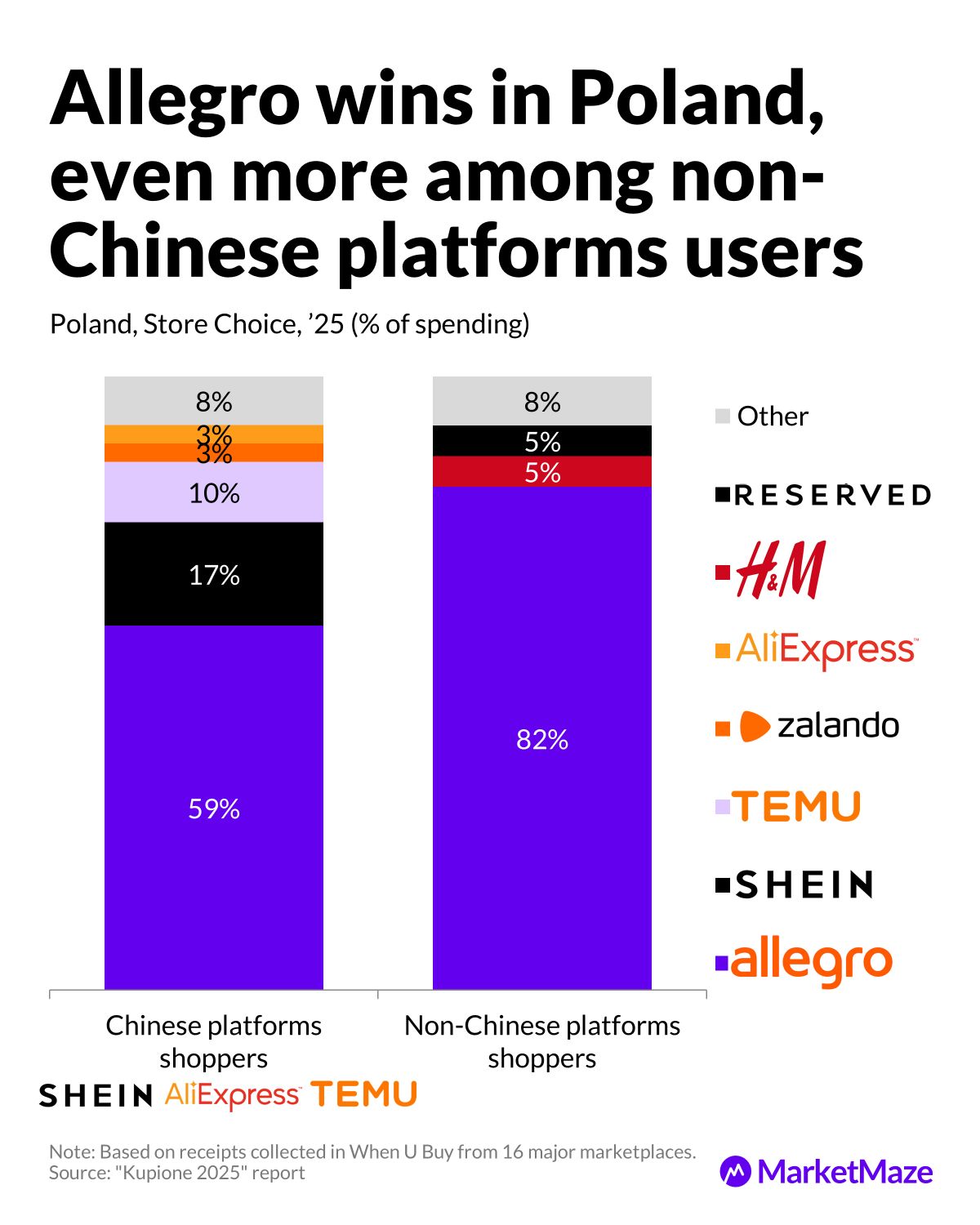 → Allegro hits 82% among non-Chinese shoppers vs 59% among Chinese-platform users.