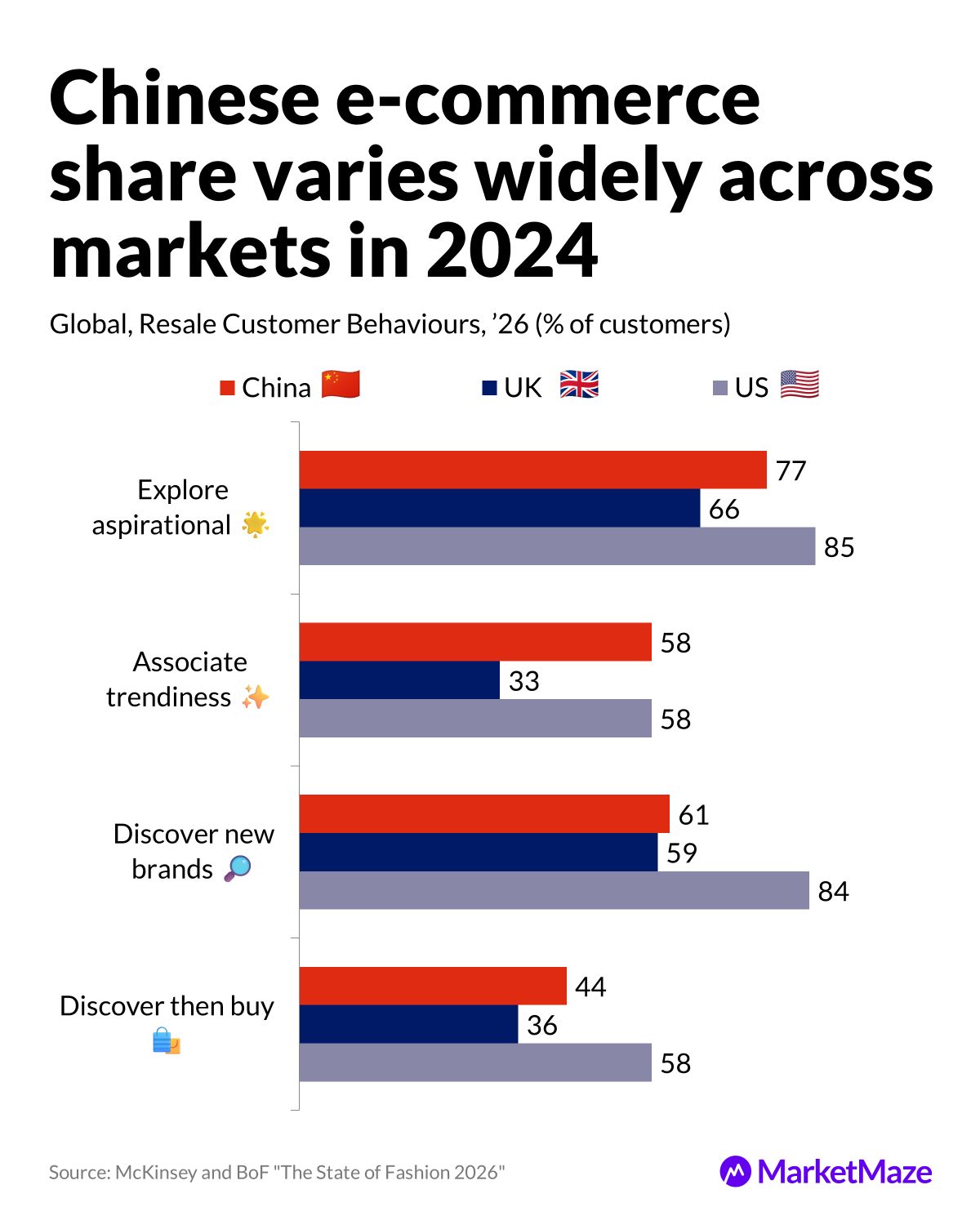 → China and the US tie at 58% associating resale with trendiness, while the UK lags at 33%.