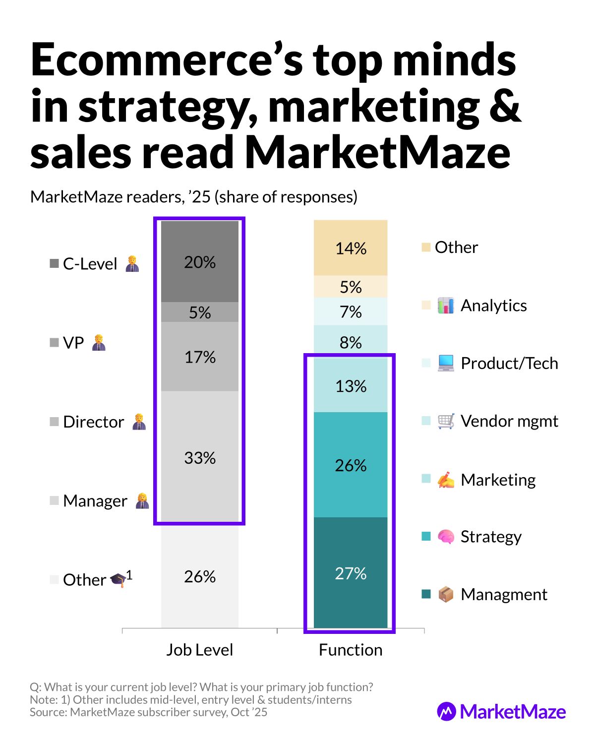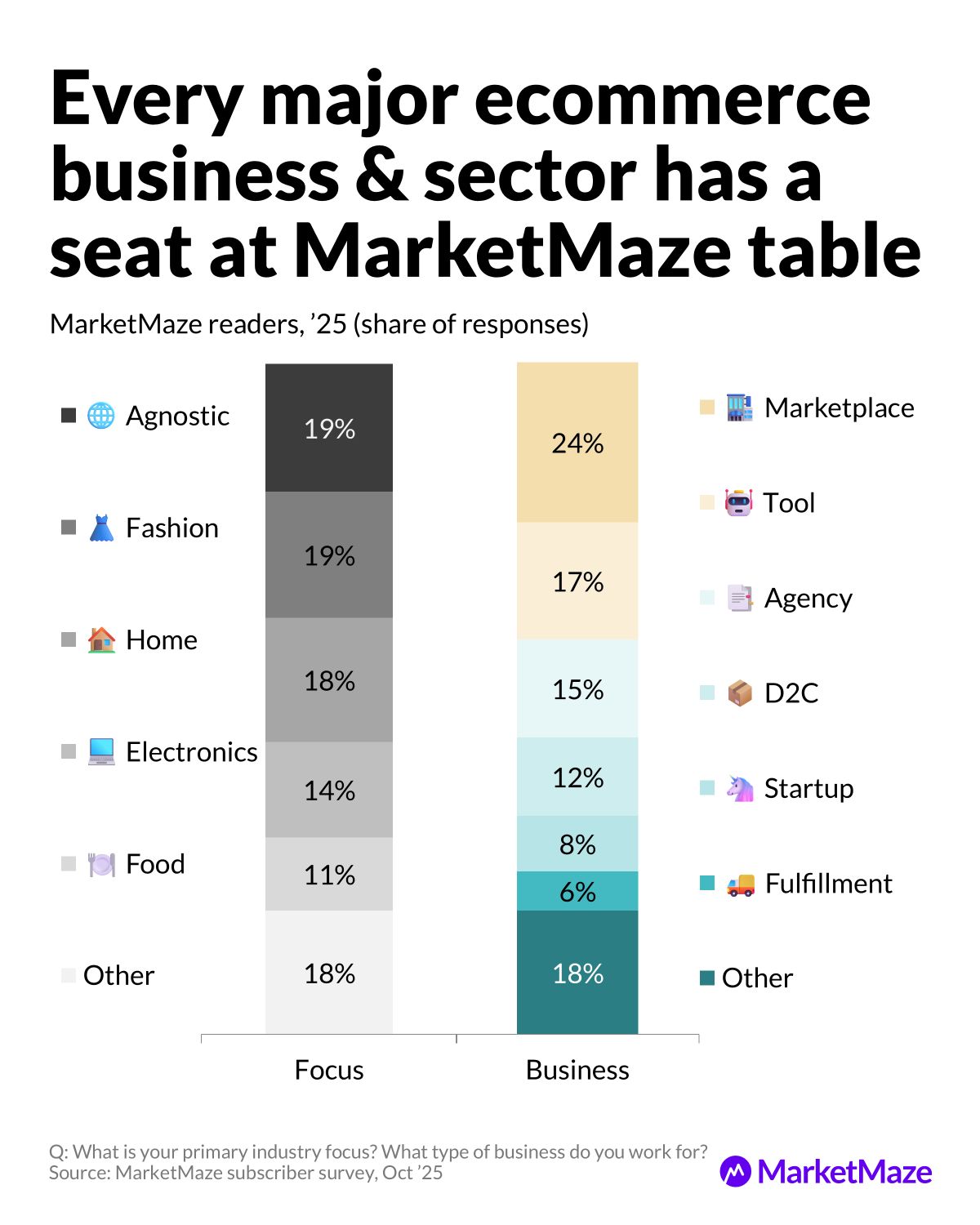 MarketMaze brings together top minds from every corner of ecommerce, spanning marketplaces, D2C, agencies, startups, and more. Directors, VPs, and C-level leaders across all sectors rely on MarketMaze to stay sharp and informed. We partner with the best in tech, SaaS, and fintech, just check out the trusted brands that advertise with us. Ready to reach this high-impact audience? Book your slot here.