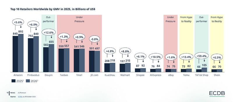 Douyin and TikTok Shop combined are forecast to reach ~$760B GMV next year, growing about 17%, with TikTok Shop alone expanding near 59%.