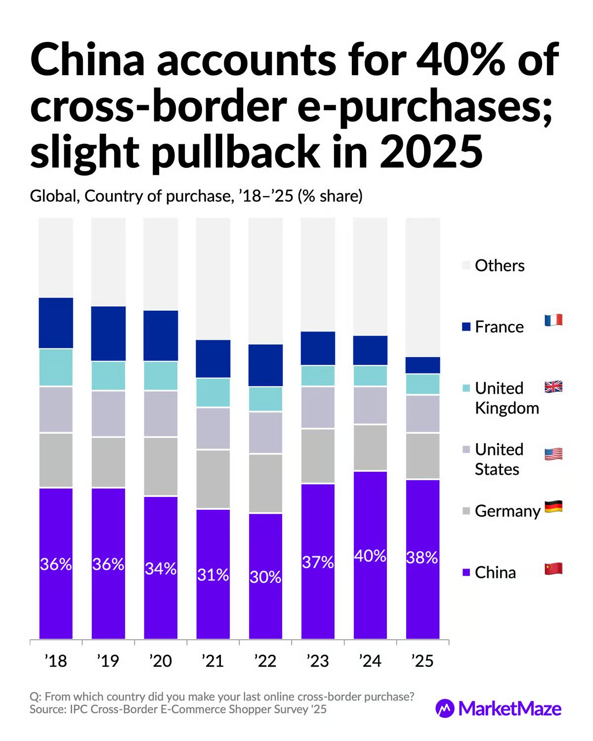 China still dominates cross-border buying, holding close to 40% share despite a small pullback in 2025 as demand spreads beyond one exporter